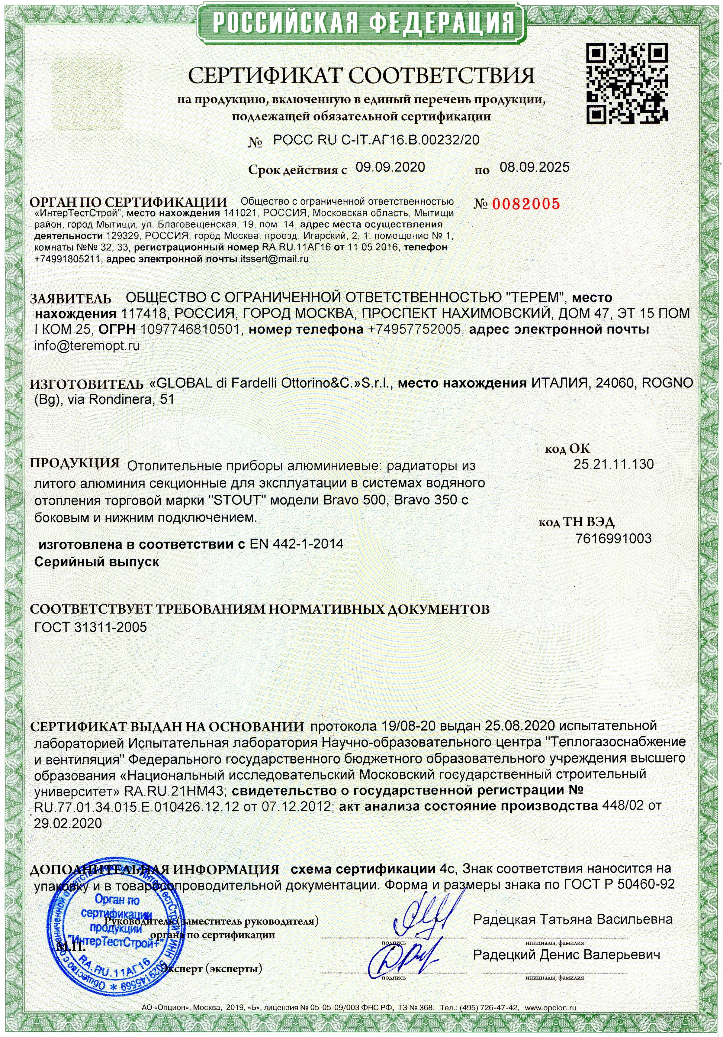 SRA-0110-050011 STOUT Bravo 500 11 секций радиатор алюминиевый боковое подключение RAL9010