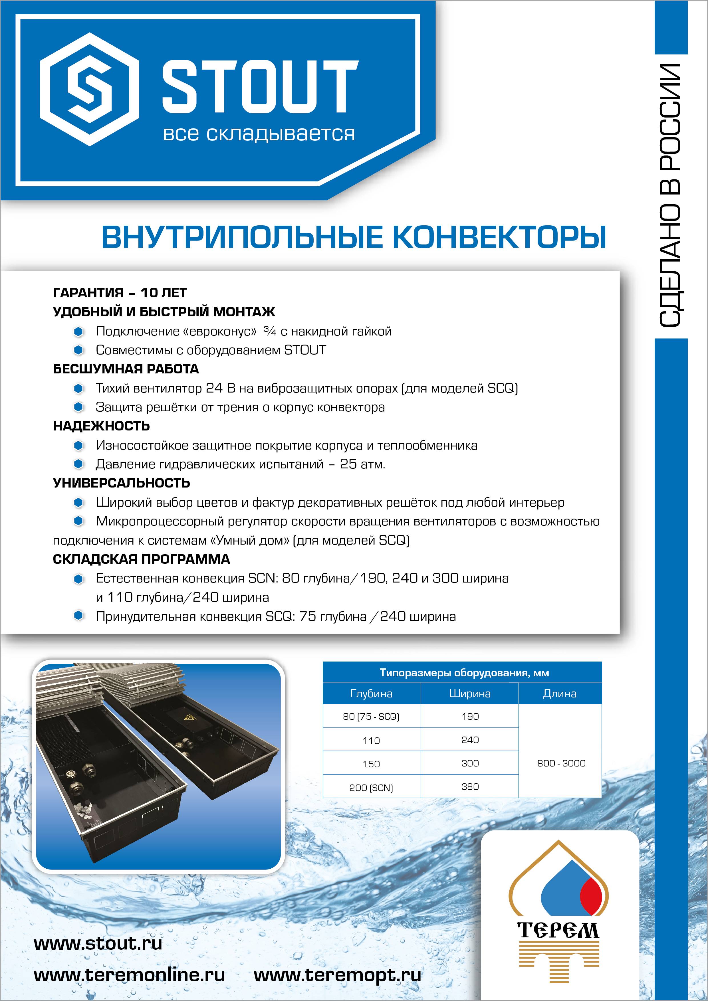Конвекторы вентиляторные STOUT типа SCQ –отопительные приборы повышенной тепловой мощности, встраиваемые в конструкцию пола и работающие по принципу вынужденной конвекции. Они предназначены для применения в системах водяного отопления жилых и общественных зданий.
