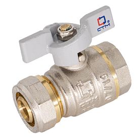 Кран шаровой для воды 26х3/4" CTM СТАНДАРТ с внутренней резьбой и цангой (обжимным соединением), ручкой-бабочкой применяется в качестве запорной арматуры на трубопроводах систем питьевого, хозяйственно-бытового и промышленного назначения, систем холодного, горячего водоснабжения и отопления, а также трубопроводах, транспортирующих среды, не агрессивные к материалам крана в составе инженерных систем и технологических установок на основе металлопластиковых труб.