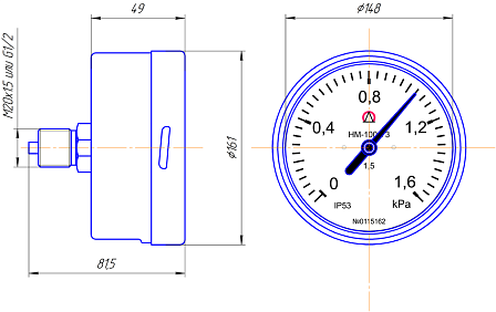 ТНМ-160-(-3,0...0...3,0)кПа-1,5-У3 Тягонапоромер,корпус нерж.,IP53,радиальный штуцер,резьба М20х1,5; №80824-20