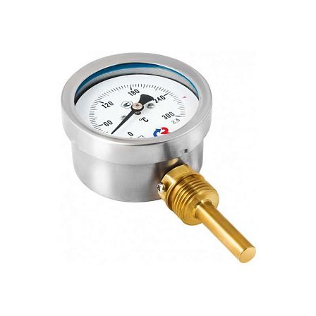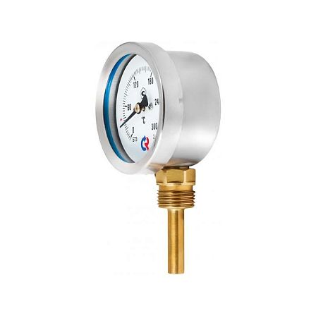 Термометр радиальный биметаллический Тип БТ, серия 211 (артикул 00000034468) предназначен для измерения температуры жидкостей, пара и газов в отопительных и санитарных установках, в системах кондиционирования и вентиляции. Радиальное присоединение в комплекте с защитной латунной* гильзой.