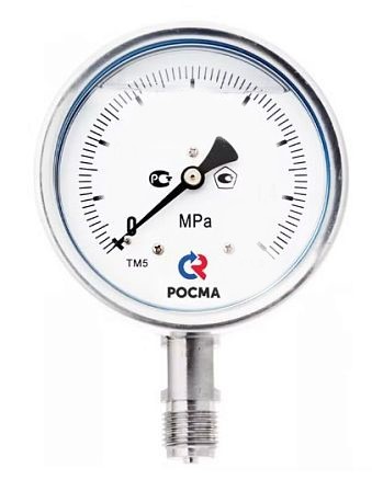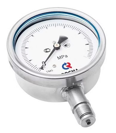 Механизм манометра защищен металлическим корпусом, препятствующим проникновению влаги и загрязнителей.
