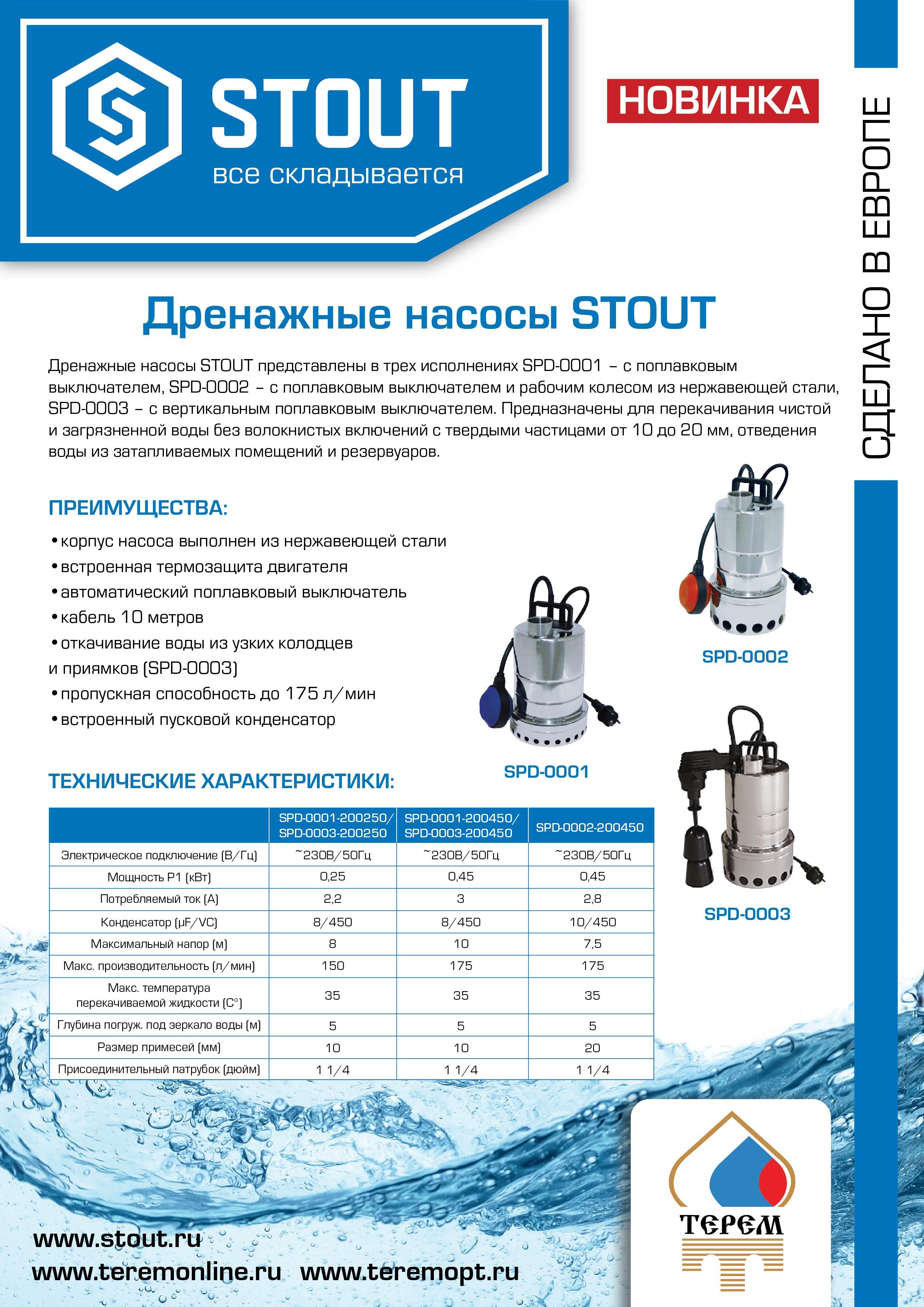 SPD-0003-200450 Насос дренажный, с вертикальным поплавком, кабель 10 м, 230V, Q=175 л/мин, H=10 м