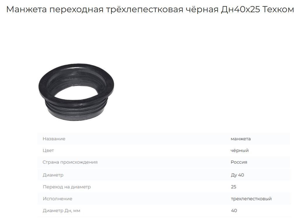 Манжета перех черный Дн40х25 трехлепестковый Техком