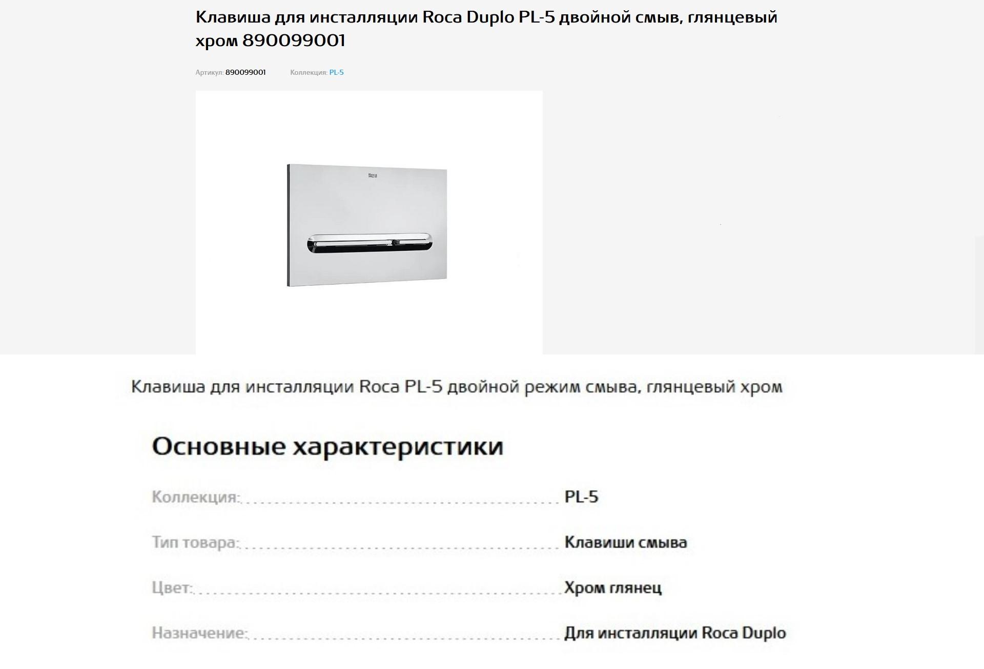 Кнопка д/инст PL5 хром глянц механ Roca 890099001