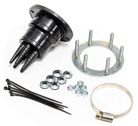 Комплектация: резиновая уплотнительная манжета - 1шт; кольцо - фланец - 1 шт, хомут пластиковый - 6шт; хомут червячный - 1шт ; гайки - 6 шт, прорезиненные шайбы 6 шт, инструкция по монтажу; упаковка.