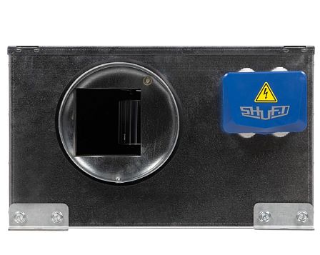 Вентилятор канальный круглый в звукоизолированном корпусе SHUFT ICFE 200 VIM (Артикул ICFE 200 VIM) оборудован высокоэффективной крыльчаткой с вперед загнутыми лопатками и асинхронным двигателем с внешним ротором; клеммная коробка. Рабочее колесо установлено методом напрессовки непосредственно на ротор электродвигателя. Электродвигатель с рабочим колесом статически и динамически сбалансированы в двух плоскостях. Шариковые подшипники двигателя не требуют техобслуживания. Двигатели имеют встроенное термореле с автоматическим перезапуском (кроме ICFE 250 VIM; ICFE 315 VIM; ICFE 400 VIM).