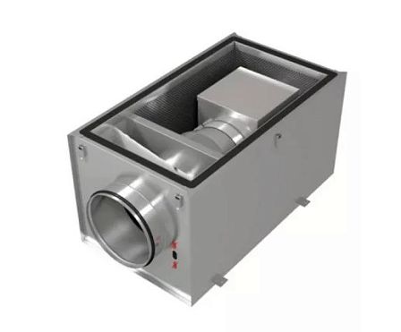 Приточная установка оснащена фильтром класса EU5, электрическим нагревателем с ТЭНами из нержавеющей стали и вентилятором. Вентилятор оборудован асинхронным двигателем с внешним ротором и не требующими обслуживания уплотненными подшипниками с увеличенным сроком службы. Защита двигателя вентилятора осуществляется встроенными термоконтактами. Трехфазные электрические нагреватели оснащены двухступенчатой защитой от перегрева. Первая ступень настроена на 50°С и перезапускается автоматически, вторая ступень настроена на 100°С и перезапускается вручную.