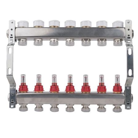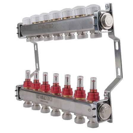 Блок колл. с расход. 1"х7 вых Евроконус 3/4, артикул VTc.584.EMNX.0607 с уникальной конструкцией – семь выходов диаметром 1 дюйм оснащены специальными разъемами типа "евроконус" 3/4 дюйма и возможностью мониторинга объема проходящего вещества.
