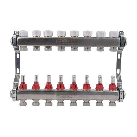 Блок колл. с расход. 1"х8 вых Евроконус 3/4, артикул VTc.584.EMNX.0608, разработанное для тщательного контроля количества потребляемой жидкости в системах отопления. Блок оснащен восемью выходами диаметром 1 дюйм с современными соединителями типа "евроконус" 3/4 дюйма, поддерживая точную балансировку и мониторинг объемов прохождения жидкости.