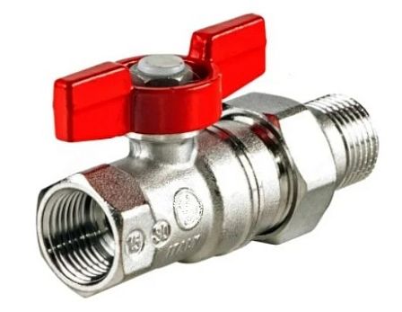 Кран шаровой Giacomini R259D Ду 20х25 Ру42 3/4"Fx 1"M латунный хромированный с американкой ВР/НР переходной красная бабочка R259X006