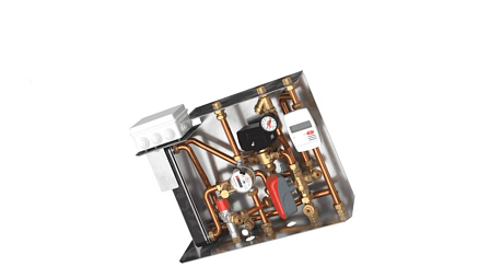 Квартирный тепловой узел представляет собой компактный гидравлический модуль, предназначенный для производства горячей санитарной воды в проточном режиме. Устройство интегрируется в системы централизованного или автономного теплоснабжения и обеспечивает передачу тепловой энергии от первичного теплоносителя к контуру холодного водоснабжения (ХВС).