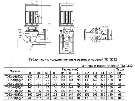 Насос TD 32-21G/2, 1,5 кВт, 3х220В/3х380В, 50 Гц, чугун, 12 бар