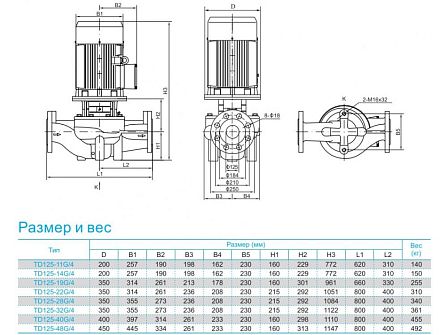 Насос циркуляционный CNP серии TD125-32G/4 — это одноступенчатый центробежный вертикальный насос с соосным расположением патрубков («ин-лайн»). Он оснащён стандартным электродвигателем и рабочим колесом, изготовленными из чугуна.