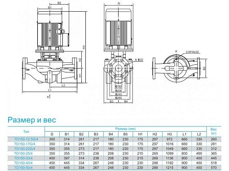 Насос TD 150-12.5G/4, 11 кВт, 3х380В, 50 Гц, чугун, 12 бар