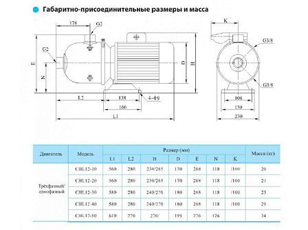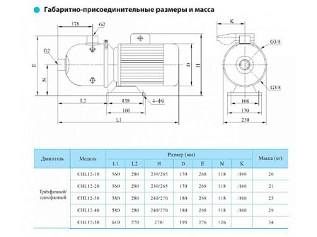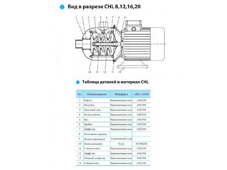 Насос CHL 12-50, 3 кВт, резьб, 3х220В/3х380В, 50 Гц, нерж, 70 С