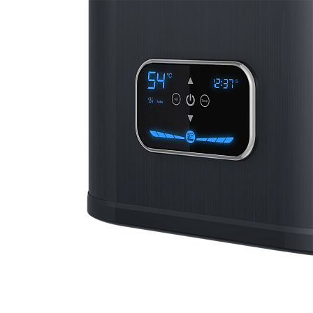 Уникальный дизайн данного водонагревателя - это оригинальное цветовое решение в тёмных тонах, приятное матовое покрытие корпуса, идеальное сочетание цвета корпуса и оформления панели. В комплекте с водонагревателем идет тонкий и легкий пульт ДУ. На стильной панели управления располагаются сенсорные кнопки включения, активации режимов работы, динамическая индикация работы, температура нагрева воды, отображение текущего времени.