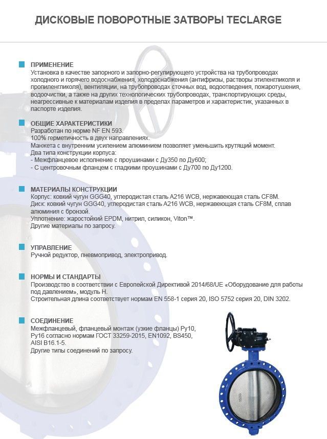 - Разработан по норме NF EN 593. 100% герметичность в двух направлениях.