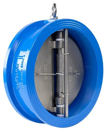 Клапан обратный двустворчатый межфл, корпус чугун, створки нерж сталь, уплотнение EPDM, PN16 DN350, артикул CB3449-EPA0350 представляет собой трубопроводную арматуру защитного типа, предназначенную для автоматического предотвращения обратного потока рабочей среды в трубопроводных системах.