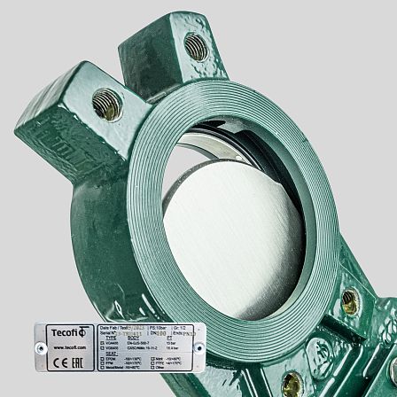 Задвижки Tecofi VG 4400-004 под э/п предназначены для открытия/закрытия или для регулирования. Односторонняя герметичность, направление движения потока указано стрелкой на корпусе. Застойные зоны практически отсутствуют: нож скользит в копусе по точно подогнанным направляющим для скольжения. Набивка сальника обеспечивает герметичность уплотнения между корпусом и ножом. Размещается в легкодоступном месте и может заменяться без снятия задвижки с трубопровода. Возможно использование для регулировки объема вязких сред при установке кольца диафрагмы. Монтажный фланец ISO 5210 позволяет посадку всех типов электрических приводов.