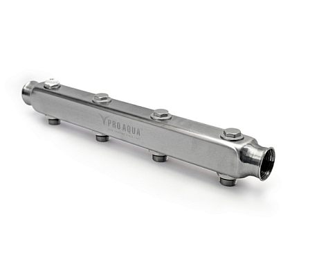 PRO AQUA Коллектор нерж.ст межосев. расстояние 100 мм 4 выхода, 390 мм, 1 1/4x3/4, артикул S530MB.04