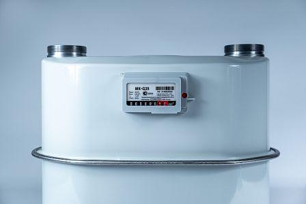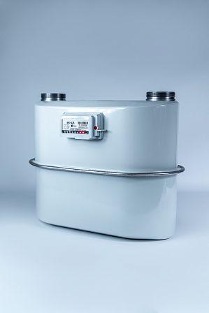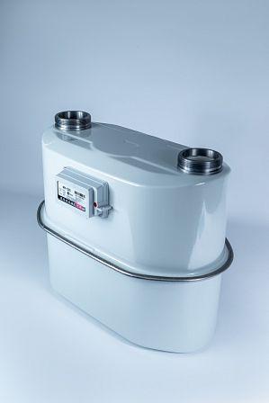 Принцип работы диафрагменного счётчика газа основан на отборе энергии поступающего газа. При перемещении диафрагм происходит поочерёдное вытеснение газа из рабочих камер. Кривошипно-шатунный механизм преобразует поступательное движение диафрагм во вращательное, которое через муфту передаётся на цифровые колёса отсчётного устройства.