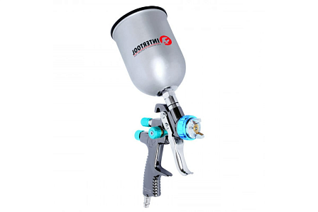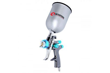 Краскопульт пневматический LVLP BLUE профессиональный, форсунка 1.4мм, верхний металлический бачок 600мл., 1.5бар
