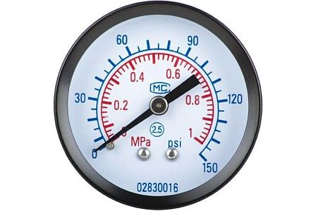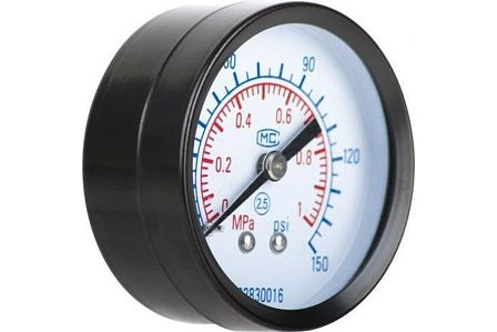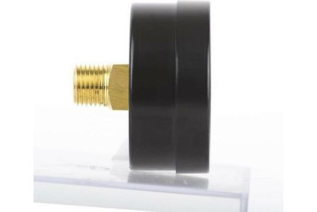 Манометр выполнен в пластиковом корпусе. Металлический штуцер (осевой) позволяет устанавливать прибор на любые блоки и фильтры с диаметром резьбы 1/4".