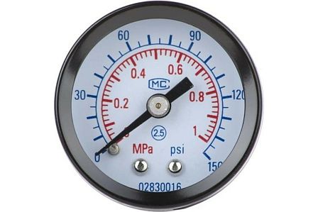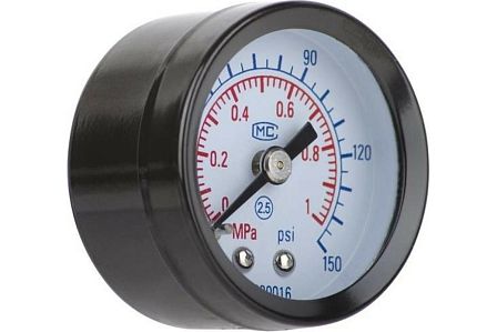 Манометр выполнен в пластиковом корпусе. Металлический штуцер (осевой) позволяет устанавливать прибор на любые блоки и фильтры с диаметром резьбы 1/8".