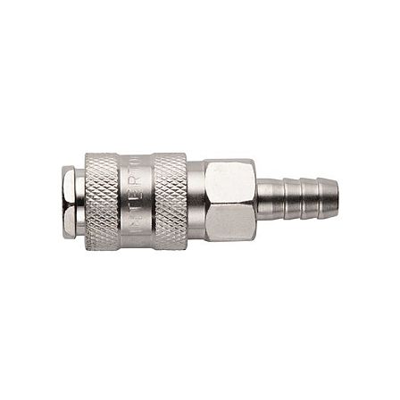PT-1801 — это быстроразъемное соединение для шланга диаметром 6 мм, обеспечивающее легкое и быстрое подключение или отключение любого пневмоинструмента к магистральной сети сжатого воздуха. Модель оснащена надежным соединительным элементом типа «мама», совместимым с любыми быстросъемными соединениями «папа». Вторая сторона фитинга оборудована переходником типа «елочка» соответствующего размера. Это изделие гарантирует абсолютную герметичность, простоту и удобство эксплуатации, обеспечивая высокий уровень надежности и долговечности при работе с инструментом.