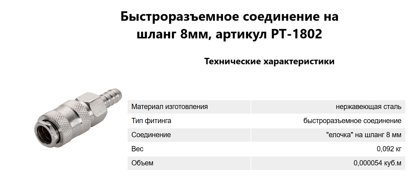 PT-1802 — это качественное быстроразъемное соединение для шланга диаметром 8 мм, которое обеспечит комфорт и надежность при подключении и отключении вашего пневмооборудования. Этот универсальный элемент позволит легко и быстро подключить инструмент к воздушной магистрали, гарантируя надежную фиксацию и отсутствие утечек воздуха. Изделие выполнено с высоким уровнем точности, что обеспечивает долгий срок службы и бесперебойную работу в любых условиях эксплуатации. Данный аксессуар станет незаменимым помощником как профессионалам, так и домашним мастерам, стремящимся оптимизировать процессы ремонта и технического обслуживания.