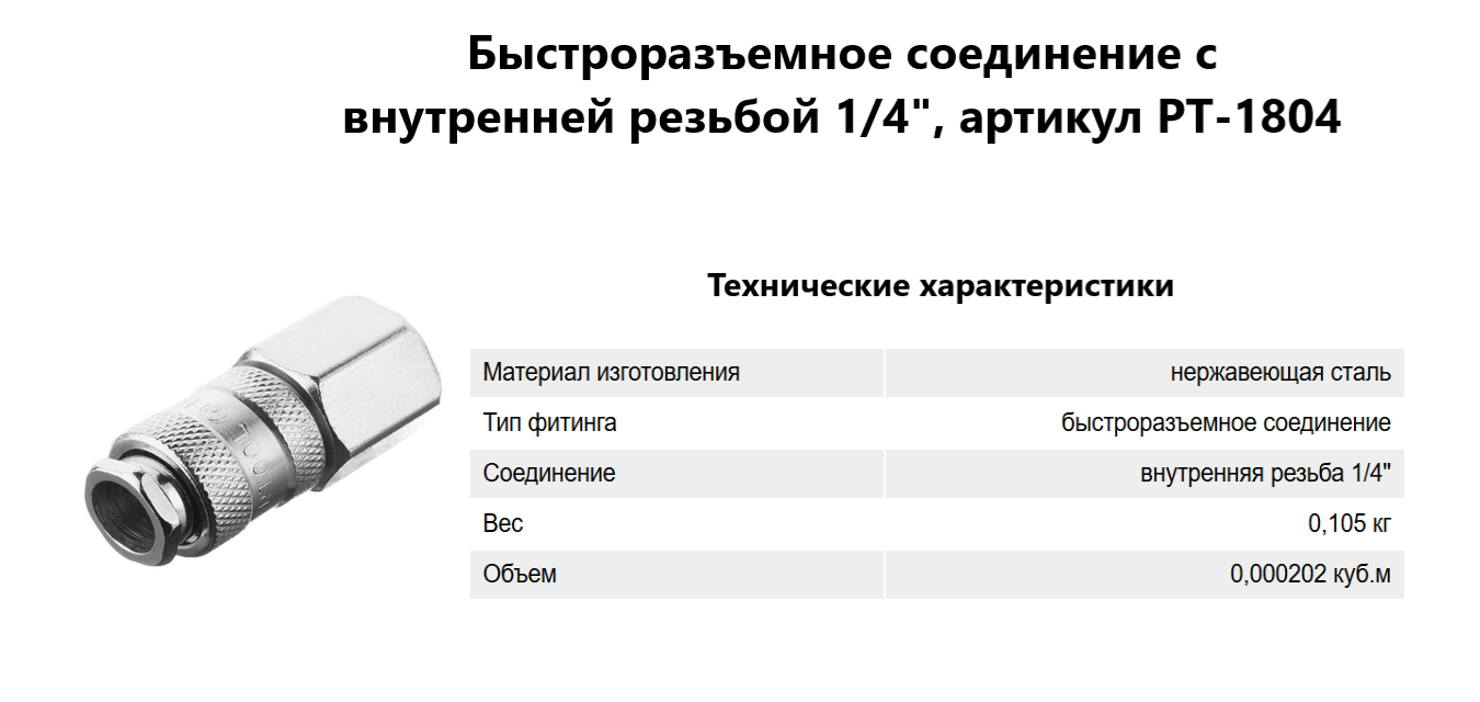Быстроразъемное соединение с внутренней резьбой 1/4"