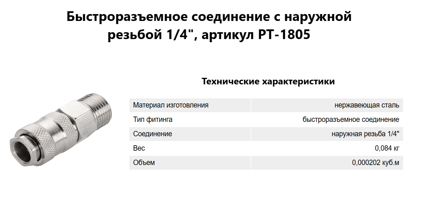 Быстроразъемное соединение с наружной резьбой 1/4"