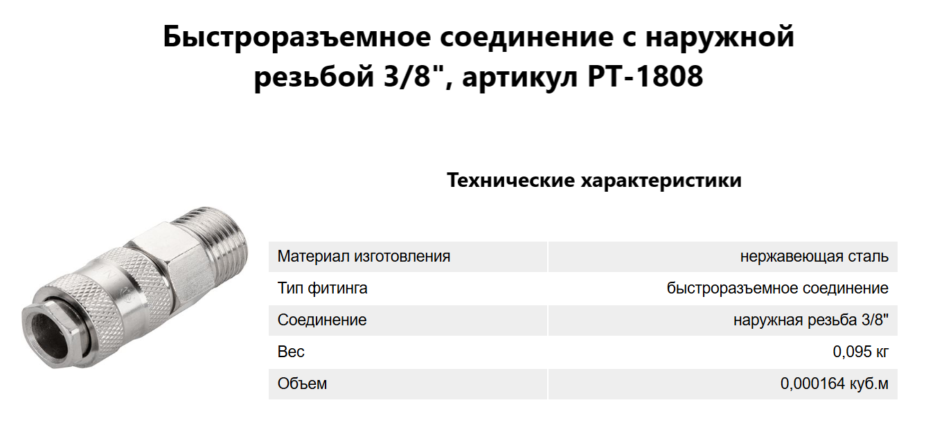 Быстроразъемное соединение с наружной резьбой 3/8"
