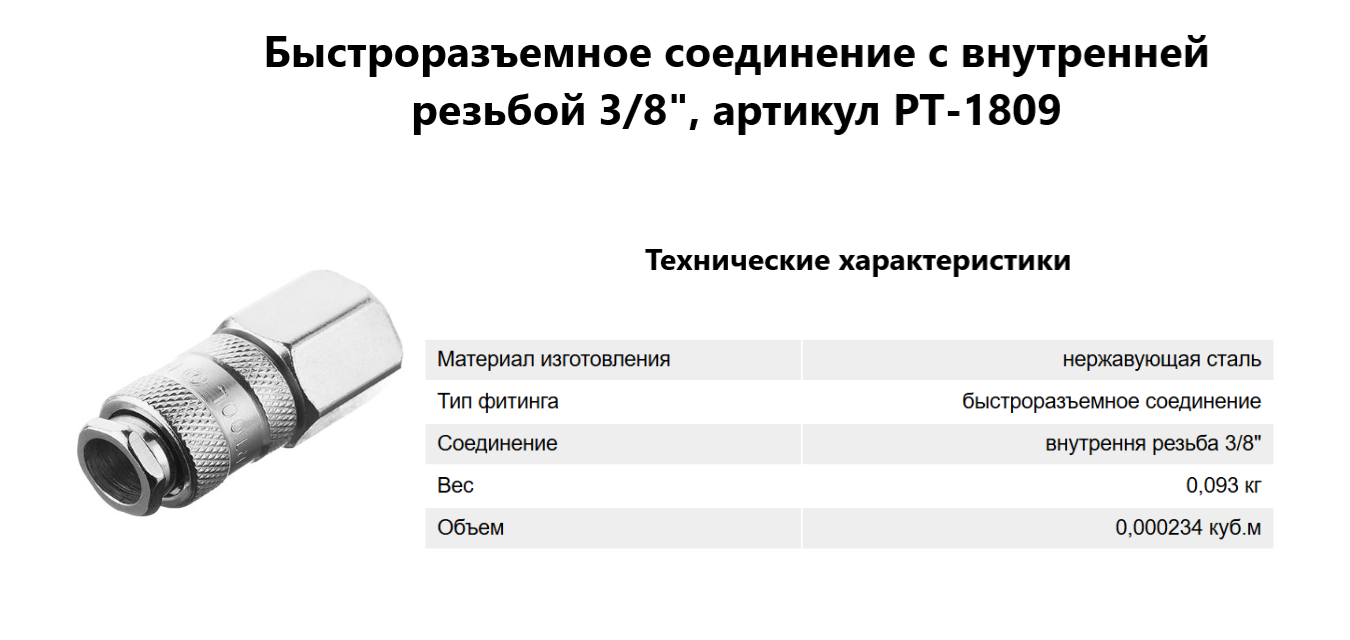 Быстроразъемное соединение с внутренней резьбой 3/8"