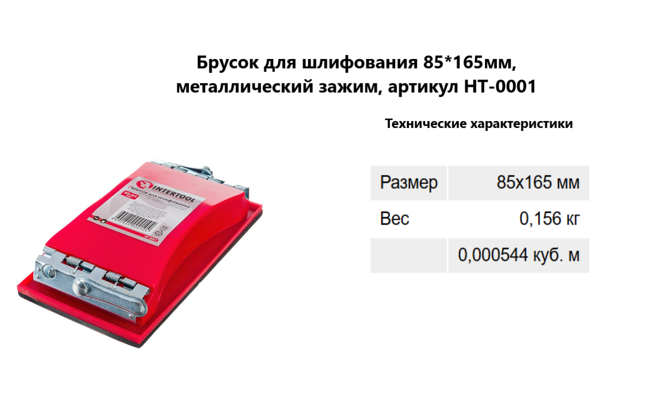 Брусок для шлифования 85*165мм, металлический зажим, артикул HT-0001