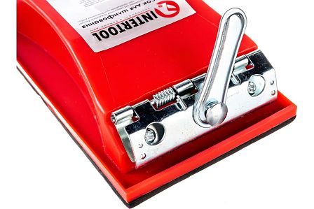 Колодка шлифовальная применяется в малярных и столярных работах. Инструмент используется для обработки слоев шпаклевки, штукатурки, гипса, а также для снятия лакокрасочных покрытий и зачистки деревянных поверхностей. Устройство совместимо с любыми типами гибких абразивов на бумажной, тканевой или сетчатой основе. Техническое решение зажимов позволяет многократно производить замену изношенного шлифовального листа.