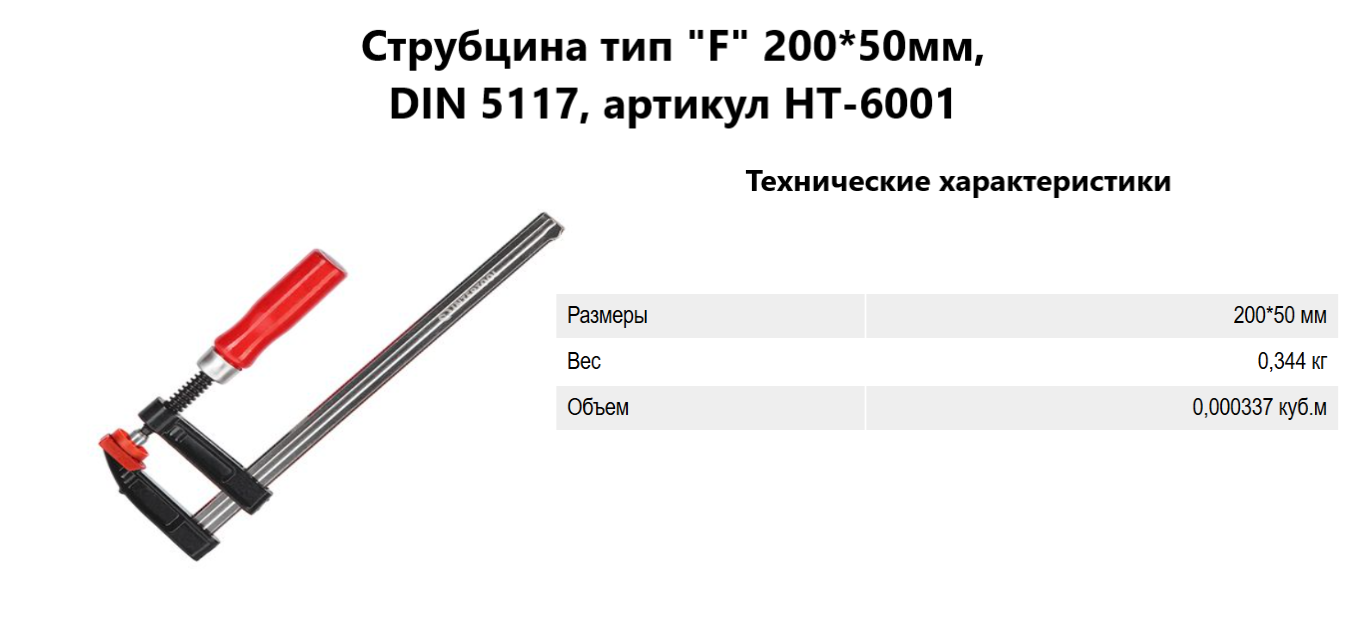 Струбцина тип "F" 200*50мм, DIN 5117, артикул HT-6001