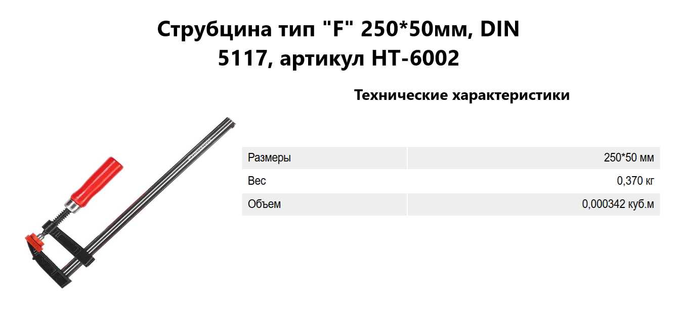 Струбцина тип "F" 250*50мм, DIN 5117, артикул HT-6002