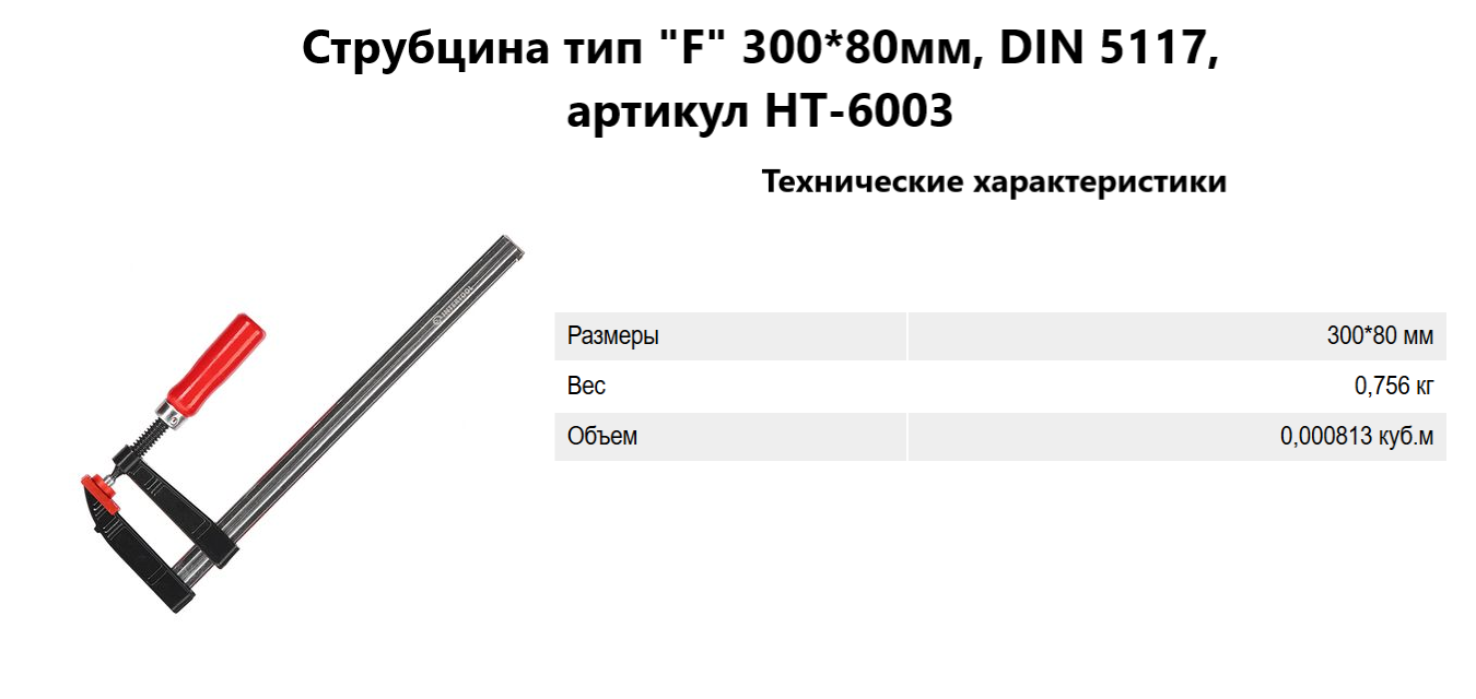 Струбцина тип "F" 300*80мм, DIN 5117, артикул HT-6003