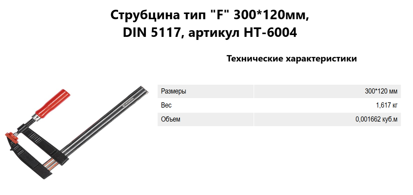 Струбцина тип "F" 300*120мм, DIN 5117, артикул HT-6004