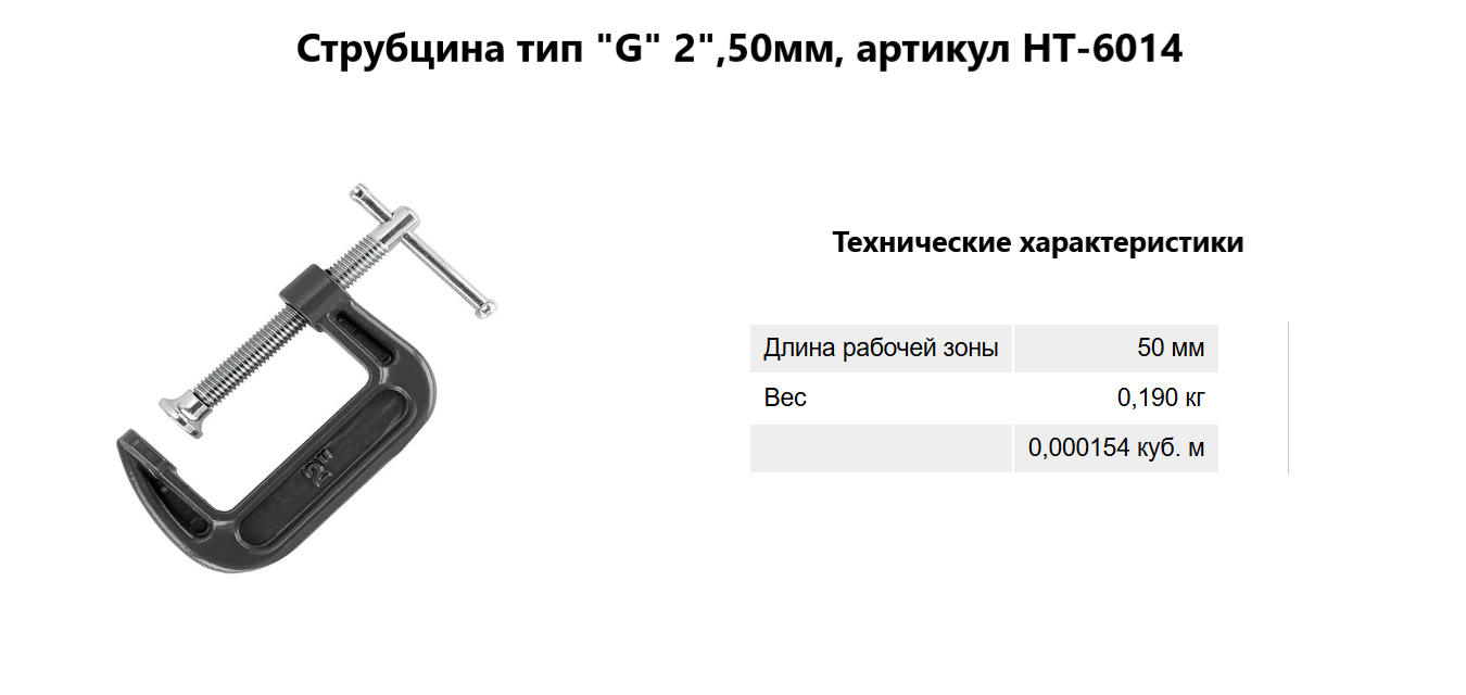 Струбцина тип "G" 2",50мм, артикул HT-6014