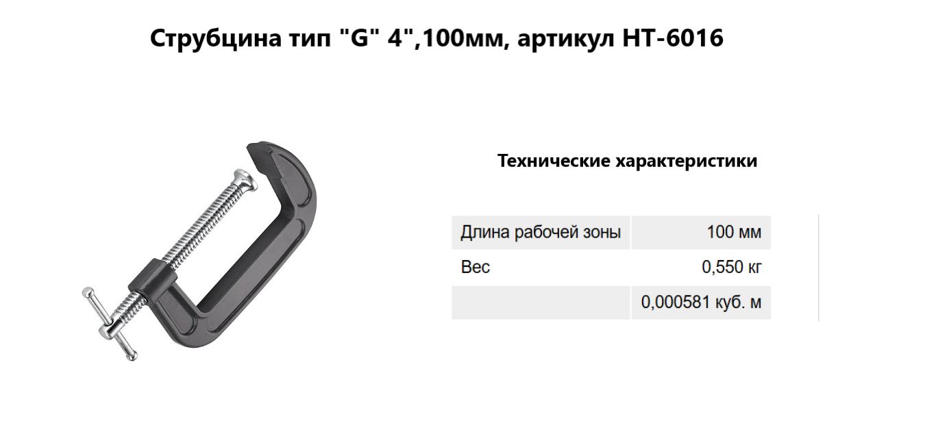 Струбцина тип "G" 4",100мм, артикул HT-6016