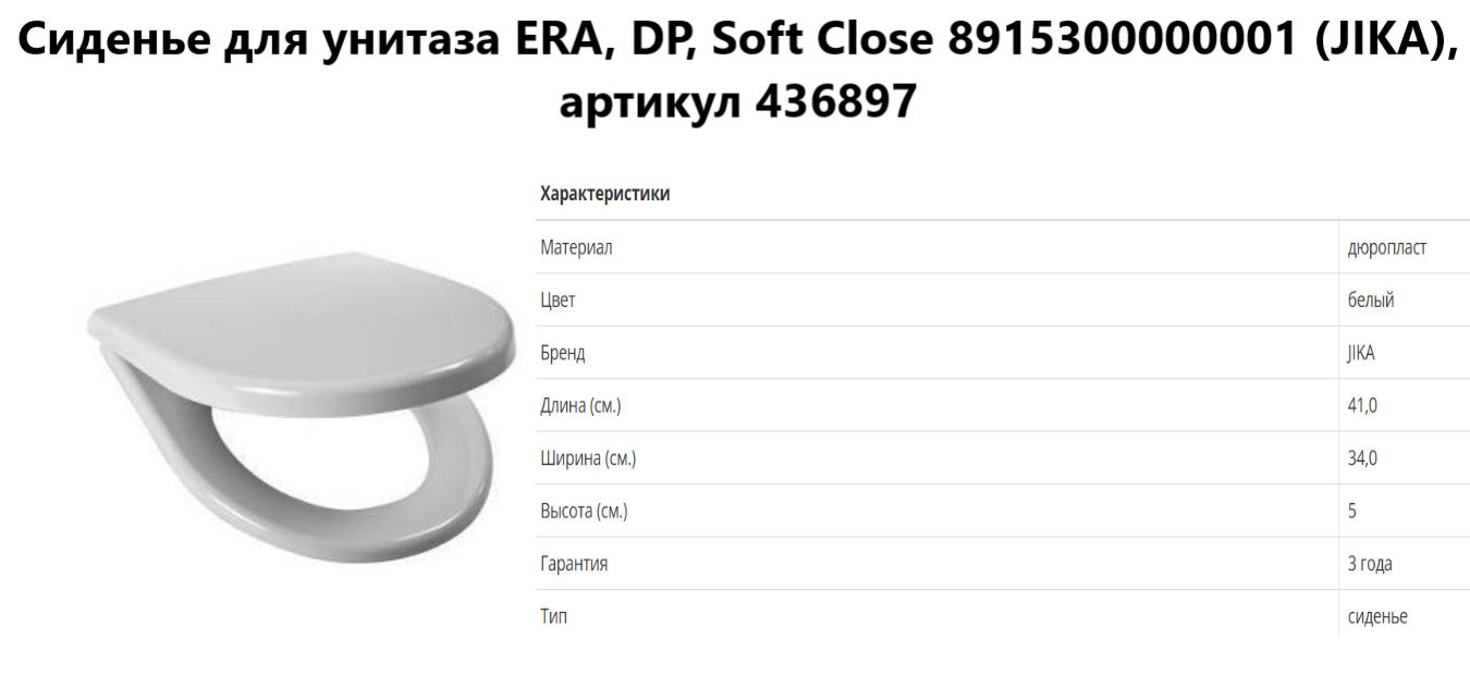 Сиденье для унитаза ERA, DP, Soft Close 8915300000001 (JIKA), артикул 436897