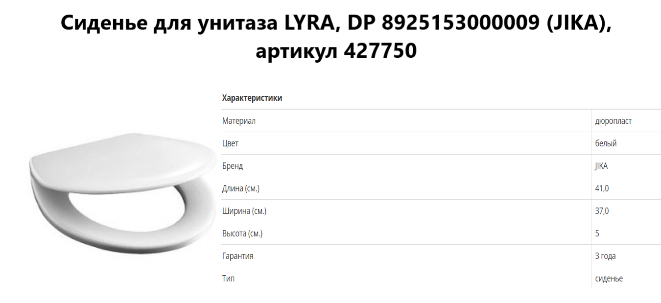 Сиденье для унитаза LYRA, DP 8925153000009 (JIKA), артикул 427750