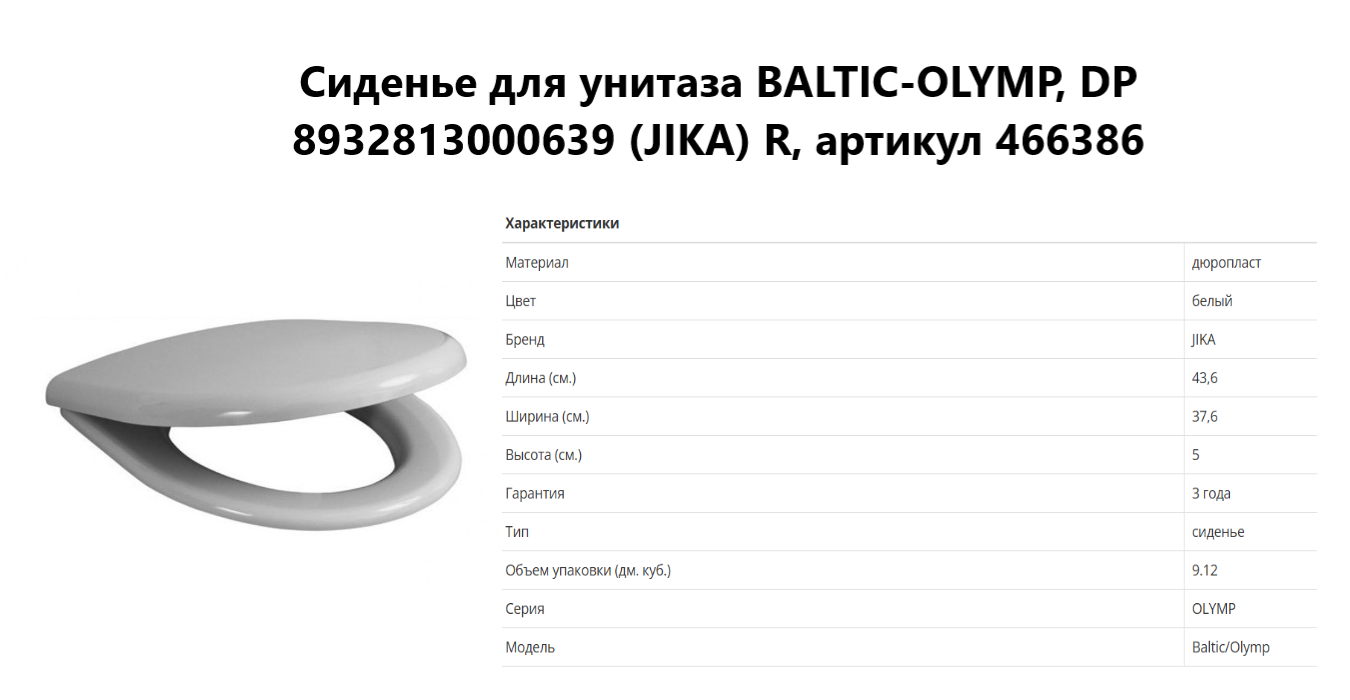 Сиденье для унитаза BALTIC-OLYMP, DP 8932813000639 (JIKA) R, артикул 466386