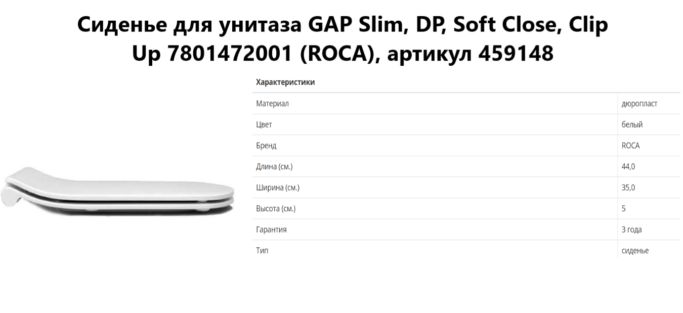 Сиденье для унитаза GAP Slim, DP, Soft Close, Clip Up 7801472001 (ROCA), артикул 459148