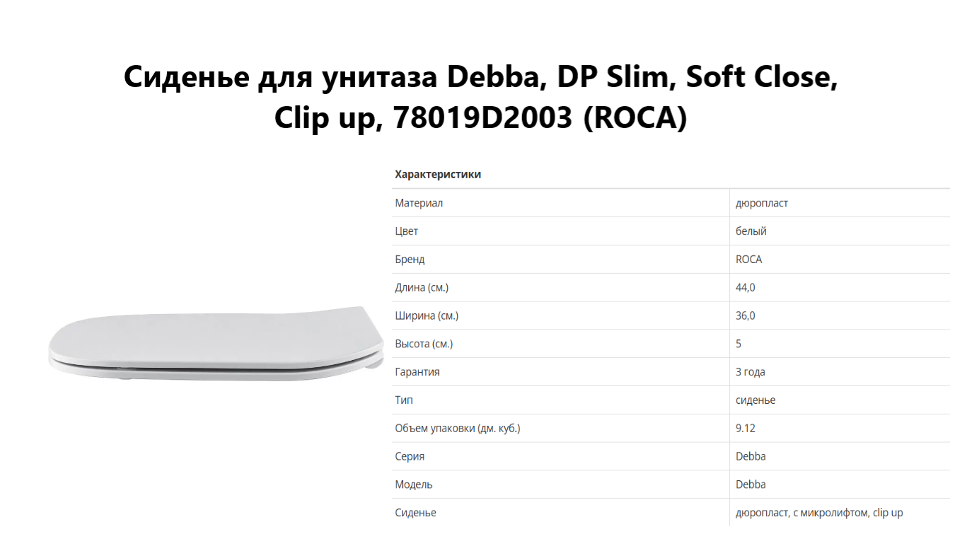 Сиденье для унитаза Debba, DP Slim, Soft Close, Clip up, 78019D2003 (ROCA), артикул 459150