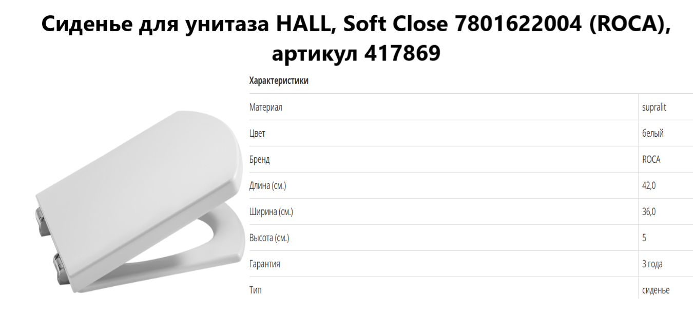 Сиденье для унитаза HALL, Soft Close 7801622004 (ROCA), артикул 417869