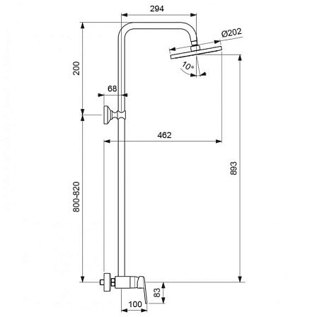 Душевая система КС ДЕНТ (30424459) d40, с душ. стойкой,ручным и верх.душем d200